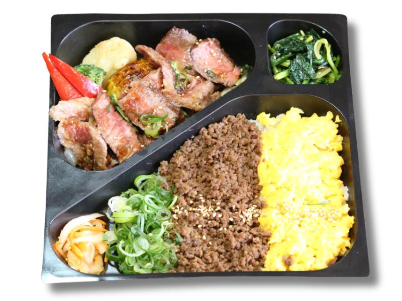 グー特製オムライス&秘伝の唐揚げ&黒毛和牛手ごねハンバーグステーキ弁当