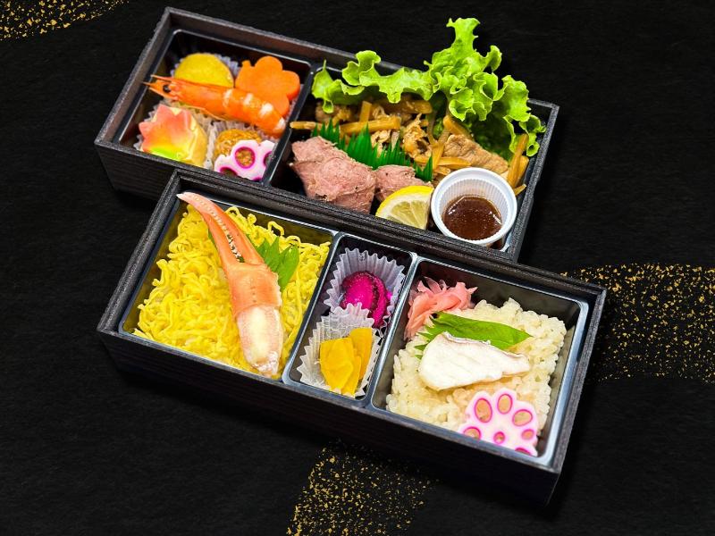 和牛すき焼重と黒毛牛のステーキの三段弁当