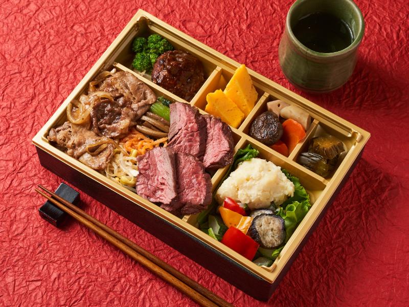 和牛すき焼重と黒毛牛のステーキの三段弁当